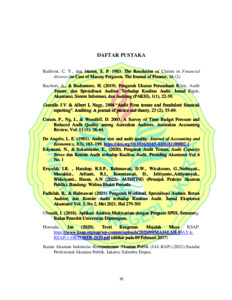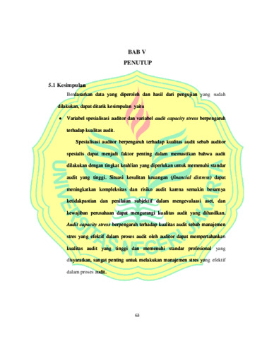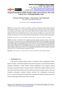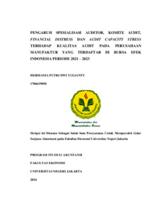 PUTRI DWI YULIANTY, HERMANIA (2024) PENGARUH SPESIALISASI AUDITOR, KOMITE AUDIT, FINANCIAL DISTRESS DAN AUDIT CAPACITY STRESS TERHADAP KUALITAS AUDIT PADA PERUSAHAAN MANUFAKTUR YANG TERDAFTAR DI BURSA EFEK INDONESIA PERIODE 2021 – 2023. S1 thesis, Universitas Negeri Jakarta.