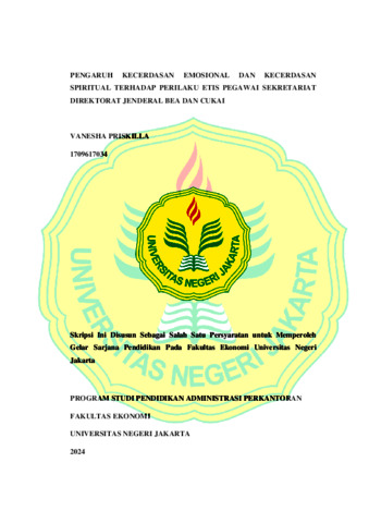 ABSTRAK VANESHA PRISKILLA. Pengaruh Kecerdasan Emosional dan Kecerdasan Spiritual terhadap Perilaku Etis Pegawai Sekretariat Direktorat Jenderal Bea dan Cukai. Skripsi. Jakarta: Fakultas Ekonomi, Universitas Negeri Jakarta, 2024. Penelitian ini bertujuan untuk menganalisis pengaruh kecerdasan emosional dan kecerdasan spiritual terhadap perilaku etis. Penelitian ini merupakan penelitian kuantitatif dengan jenis data primer dan data sekunder, di mana sumber data berasal dari hasil jawaban kuesioner dan data perusahaan. Populasi pada penelitian ini adalah seluruh pegawai yang bekerja pada kantor Sekretariat Direktorat Jenderal Bea dan Cukai. Sampel pada penelitian ini dipilih dengan menggunakan teknik random sampling, dengan kriteria pegawai dari Sekretariat Direktorat Jenderal Bea dan Cukai yang dapat menjadi responden penelitian. Jumlah kuesioner yang dapat diolah adalah sebanyak 170, selanjutnya data ini diolah dengan program IBM SPSS Statistics 27. Hasil penelitian ini menunjukkan bahwa kecerdasan emosional dan kecerdasan spiritual memiliki pengaruh signifikan terhadap perilaku etis. Penelitian ini memberikan implikasi bagi Sekretariat Direktorat Jenderal Bea dan Cukai untuk terus membangun budaya organisasi yang positif, seperti kegiatan yang dapat meningkatkan keterampilan sosial dan spiritualitas pegawai. Kata Kunci: Kecerdasan Emosional, Kecerdasan Spiritual, Perilaku Etis