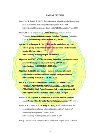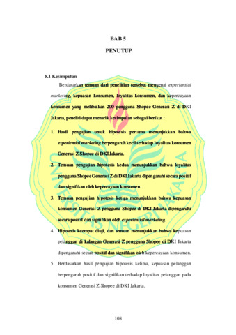 ABSTRAK Deischa Yuky Andarizky. 1707620058 . Pengaruh Experiential Marketing dan Kepercayaan Konsumen Terhadap Loyalitas Pengguna Shopee Melalui Kepuasan Pelanggan Sebagai Variabel Mediasi (Studi Kasus Generasi Z di DKI Jakarta. Juli 2024 Tujuan dari penelitian ini adalah untuk mengetahui pengaruh experiential marketing, kepercayaan konsumen terhadap loyalitas pengguna Shopee generasi Z di Jakarta. Metode penelitian ini menggunakan desain penelitian kuantitatif dengan menyebarkan kuesioner. Sebanyak 200 responden yang dijadikan sampel dengan menggunakan teknik purposive sampling. Objek penelitian dalam penelitian ini adalah responden yang berusia 18-27 tahun dan pernah menggunakan Shopee minimal tiga kali dalam kurun waktu satu tahun terakhir. Penelitian ini menggunakan software SmartPLS 4.0 untuk menganalisis dan mengolah data penelitian. Teknik pengambilan sampel menggunakan teknik purposive sampling menggunakan rumus Hair dan berjumlah 200 responden. Hasil penelitian menunjukkan bahwa: Pertama, experiential marketing tidak berpengaruh positif dan signifikan terhadap loyalitas pelanggan. Kedua, kepercayaan konsumen berpengaruh positif dan signifikan terhadap loyalitas pelanggan. Ketiga, experiential marketing berpengaruh positif dan signifikan terhadap kepuasan pelanggan. Keempat, kepercayaan konsumen berpengaruh positif dan signifikan terhadap kepuasan pelanggan. Kelima, kepuasan pelanggan berpengaruh positif dan signifikan terhadap loyalitas pelanggan. Keenam, experiential marketing berpengaruh positif dan signifikan terhadap loyalitas pelanggan melalui kepuasan pelanggan. Ketujuh, kepercayaan konsumen berpengaruh positif dan signifikan terhadap loyalitas pelanggan melalui kepuasan pelanggan. Kata Kunci : Experiential Marketing, Kepercayaan Konsumen, Kepuasan Pelanggan, dan Loyalitas Pelanggan.
