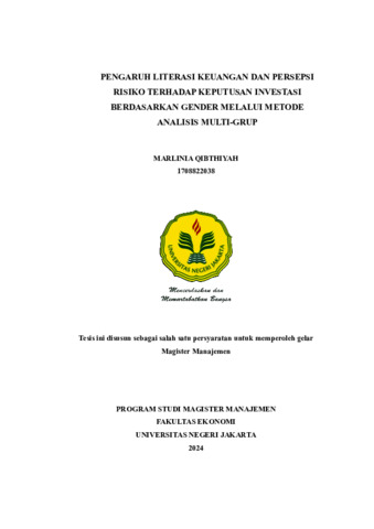 QIBTHIYAH, MARLINIA (2024) PENGARUH LITERASI KEUANGAN DAN PERSEPSI RISIKO TERHADAP KEPUTUSAN INVESTASI BERDASARKAN GENDER MELALUI METODE ANALISIS MULTI-GRUP. S2 thesis, Universitas Negeri Jakarta.