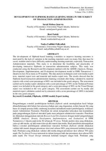 MELISSA JUNEVTA BR. HUTAGALUNG, SARAH (2024) PENGEMBANGAN MEDIA PEMBELAJARAN BERBASIS FLIPBOOK PADA MATA PELAJARAN ADMINISTRASI TRANSAKSI BISNIS RITEL DI SMK TAMANSISWA 1 JAKARTA. S1 thesis, Universitas Negeri Jakarta.