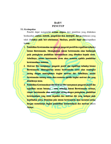 Talitha Majid, Tyas (2024) PENDIDIKAN KEWIRAUSAHAAN DAN MOTIVASI DIRI TERHADAP INTENSI BERWIRAUSAHA SISWA SMKN 45 JAKARTA. S1 thesis, Universitas Negeri Jakarta.