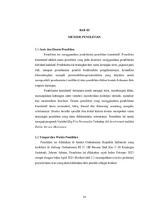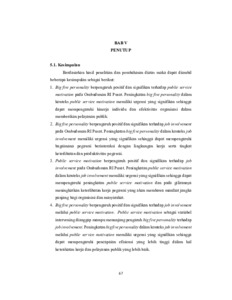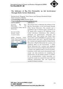 PENGARUH BIG FIVE PERSONALITY TERHADAP JOB INVOLVEMENT DENGAN DIMEDIASI OLEH PUBLIC SERVICE MOTIVATION (Studi Pada Pegawai di Ombudsman RI Pusat)