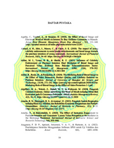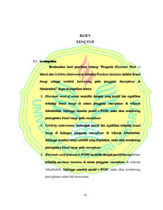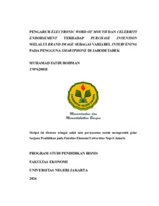 FATHUROHMAN, MUHAMAD (2024) PENGARUH ELECTRONIC WORD OF MOUTH DAN CELEBRITY ENDORSEMENT TERHADAP PURCHASE INTENTION MELALUI BRAND IMAGE SEBAGAI VARIABEL INTERVENING PADA PENGGUNA SMARTPHONE DI JABODETABEK. S1 thesis, Universitas Negeri Jakarta.