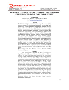 JAVIERA, OLIVIA (2024) PENGARUH LEVERAGE, INTENSITAS MODAL, DAN PROPORSI KOMISARIS INDEPENDEN TERHADAP TARIF PAJAK EFEKTIF. S1 thesis, Universitas Negeri Jakarta.