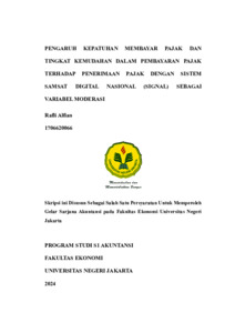 Alfian, Rafli (2024) PENGARUH KEPATUHAN MEMBAYAR PAJAK DAN TINGKAT KEMUDAHAN DALAM PEMBAYARAN PAJAK TERHADAP PENERIMAAN PAJAK DENGAN SISTEM SAMSAT DIGITAL NASIONAL (SIGNAL) SEBAGAI VARIABEL MODERASI. S1 thesis, Universitas Negeri Jakarta.