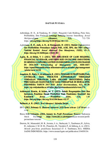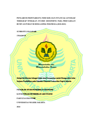 HASANAH, SUMROTUL (2024) PENGARUH PROFITABILITY, FIRM SIZE, DAN FINANCIAL LEVERAGE TERHADAP TINDAKAN INCOME SMOOTHING PADA PERUSAHAAN BUMN GO PUBLIC DI BURSA EFEK INDONESIA (2018-2022). S1 thesis, Universitas Negeri Jakarta.