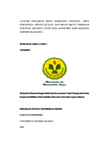 CAHYA, MUHAMAD ARIZA (2024) ANALISIS PENGARUH GREEN MARKETING STRATEGIC, PRICE PERCEPTION, SERVICE QUALITY, DAN BRAND EQUITY TERHADAP PURCHASE DECISION: STUDI PADA KONSUMEN KOPI KELILING MODERN DI JAKARTA. S1 thesis, Universitas Negeri Jakarta.