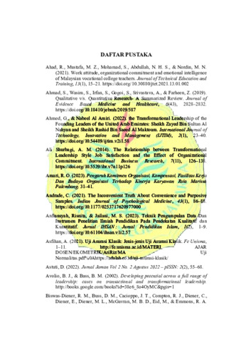 Rofiq, Muhammad Ainur (2024) PENGARUH KEPEMIMPINAN TRANSFORMASIONAL DAN KEPUASAN KERJA TERHADAP KOMITMEN ORGANISASI PADA PT X SE-JABODETABEK. S1 thesis, Universitas Negeri Jakarta.