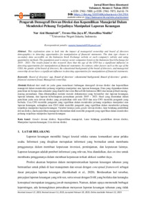 HUMAIRAH, NUR AINI (2025) PENGARUH DEMOGRAFI DEWAN DIREKSI DAN KEPEMILIKAN MANAJERIAL DALAM MENDETEKSI PELUANG TERJADINYA MANIPULASI LAPORAN KEUANGAN. S1 thesis, Universitas Negeri Jakarta.