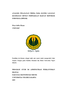 Hasan, Elsya Safira (2025) ANALISIS PELAYANAN PRIMA PADA KLINIK LAYANAN KESEHATAN DEWAN PERWAKILAN RAKYAT REPUBLIK INDONESIA (DPR-RI). S1 thesis, Universitas Negeri Jakarta.