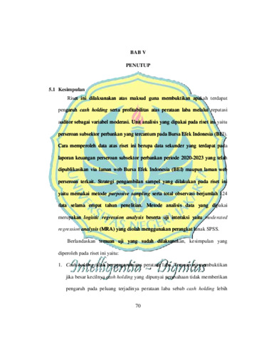 PENGARUH CASH HOLDING DAN PROFITABILITAS TERHADAP PERATAAN LABA DENGAN REPUTASI AUDITOR SEBAGAI VARIABEL MODERASI PADA PERUSAHAAN SUBSEKTOR PERBANKAN