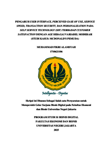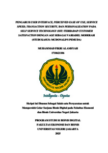 Alamsyah, Muhammad Fikri (2025) PENGARUH USER INTERFACE, PERCEIVED EASE OF USE, SERVICE SPEED, TRANSACTION SECURITY, DAN PERSONALIZATION PADA SELF SERVICE TECHNOLOGY (SST) TERHADAP CUSTOMER SATISFACTION DENGAN AGE SEBAGAI VARIABEL MODERASI (STUDI KASUS: MCDONALD'S PEMUDA). S1 thesis, Universitas Negeri Jakarta.
