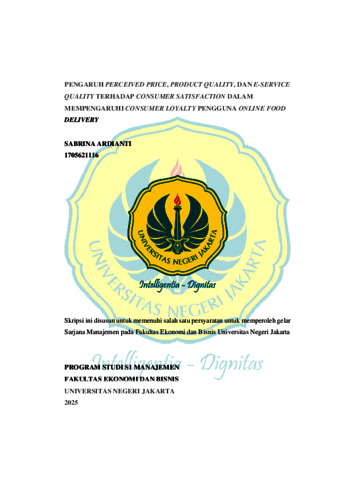 Ardianti, Sabrina (2025) PENGARUH PERCEIVED PRICE, PRODUCT QUALITY, DAN E-SERVICE QUALITY TERHADAP CONSUMER SATISFACTION DALAM MEMPENGARUHI CONSUMER LOYALTY PENGGUNA ONLINE FOOD DELIVERY. S1 thesis, Universitas Negeri Jakarta.