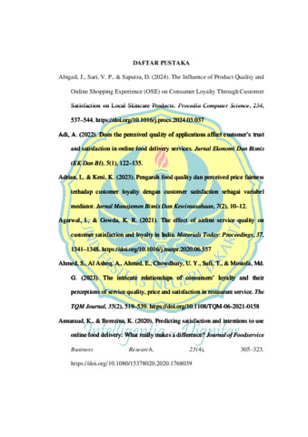 PENGARUH PERCEIVED PRICE, PRODUCT QUALITY, DAN E-SERVICE QUALITY TERHADAP CONSUMER SATISFACTION DALAM MEMPENGARUHI CONSUMER LOYALTY PENGGUNA ONLINE FOOD DELIVERY