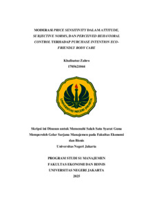 Zahro, Khalisatuz (2025) MODERASI PRICE SENSITIVITY DALAM ATTITUDE, SUBJECTIVE NORMS, DAN PERCEIVED BEHAVIORAL CONTROL TERHADAP PURCHASE INTENTION ECOFRIENDLY BODY CARE. S1 thesis, Universitas Negeri Jakarta.