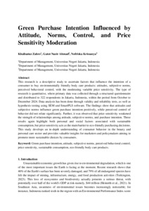 Penelitian ini merupakan studi deskriptif yang dirancang untuk mengetahui faktorfaktor yang memengaruhi niat konsumen dalam membeli produk perawatan tubuh yang ramah lingkungan. Faktor utama yang dikaji meliputi attitude, subjective norms, dan perceived behavioral control, dengan price sensitivity sebagai variabel moderator. Penelitian ini mengeksplorasi berbagai determinan perilaku yang mendorong maupun menghambat niat pembelian hijau dalam industri kecantikan dan perawatan pribadi. Penelitian ini menggunakan pendekatan kuantitatif, dengan data primer yang diperoleh melalui kuesioner terstruktur. Responden dalam penelitian ini berjumlah 322 orang di Jakarta, Indonesia, yang berpartisipasi dari bulan Oktober hingga Desember 2024. Analisis data meliputi uji validitas dan reliabilitas, serta pengujian hipotesis. Hasil penelitian menunjukkan bahwa attitude dan subjective norms berpengaruh positif terhadap green purchase intention, yang menegaskan peran keyakinan pribadi dan tekanan sosial dalam membentuk perilaku konsumsi berkelanjutan. Namun, perceived behavioral control yang dirasakan tidak terbukti berhubungan secara signifikan dengan green purchase intention, yang mungkin menunjukkan bahwa dampaknya bersifat kontekstual. Price sensitivity menjadi variabel moderasi yang tidak mempengaruhi dalam melemahkan atau menguatkan hubungan antara attitude, subjective norms, dan perceived behavioral control dalam green purchase intention. Dengan demikian, studi ini memberikan wawasan penting dalam perilaku konsumen dan menyoroti peran ganda faktor psikososial dan ekonomi. Temuan ini memberikan rekomendasi praktis bagi pemasar dan pembuat kebijakan dalam mendorong adopsi produk ramah lingkungan dan membangun pilihan konsumen yang berkelanjutan. Kata Kunci: Green purchase intention, attitude, subjective norms, perceived behavioral control, price sensitivity, eco-friendly body care products