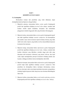 Penelitian ini bertujun untuk mengetahui pengaruh kualitas sistem, kualitas informasi, dan aktivitas pemasaran media sosial terhadap nilai yang dirasakan, kepuasan konsumen kepada loyalitas konsumen terhadap pembelian tiket wisata di marketplace. Penelitian ini menggunakan penelitian kuantitatif dengan teknik purposive sampling dan menggunakan sampel sebanyak 200 orang. Teknik pengumpulan data menggunakan kuesioner. Analisis data menggunakan aplikasi SEM AMOS dan SPSS. Hasil penelitian menunjukkan bahwa kualitas sistem, kualitas informasi, dan aktivitas pemasaran media sosial berpengaruh positif dan signifikan terhadap nilai yang dirasakan, kualitas sistem berpengaruh negatif dan tidak signifikan terhadap kepuasan konsumen, kualitas informasi berpengaruh positif dan tidak signifikan, aktivitas pemasaran media sosial berpengaruh positif dan signifikan terhadap kepuasan konsumen, nilai yang dirasakan berpengaruh positif dan signifikan terhadap kepuasan konsumen, nilai yang dirasakan berpengaruh positif dan signifikan terhadap loyalitas konsumen, dan kepuasan konsumen berpengaruh positif dan tidak signifikan terhadap loyalitas konsumen. Keywords: Kualitas sistem, kualitas informasi, aktivitas pemasaran media sosial, nilai yang dirasakan, kepuasan konsumen, loyalitas konsum