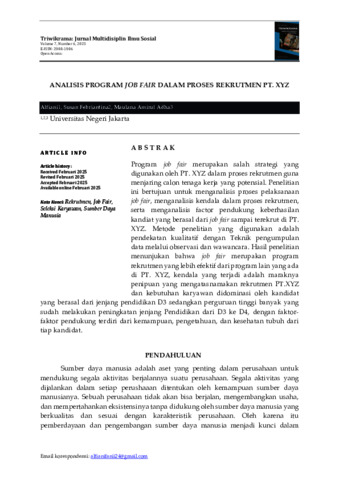 Alfiani, Alfiani (2025) ANALISIS PROGRAM JOB FAIR DALAM PROSES REKRUTMEN PT KALIMANTAN PRIMA PERSADA. S1 thesis, Universitas Negeri Jakarta.