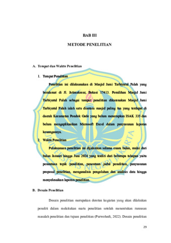 PENYUSUNAN LAPORAN KEUANGAN ENTITAS BERORIENTASI NONLABA BERDASARKAN ISAK 335 DENGAN MENGGUNAKAN MICROSOFT EXCEL (STUDI KASUS PADA MASJID JAMI TARBIYATUL FALAH)