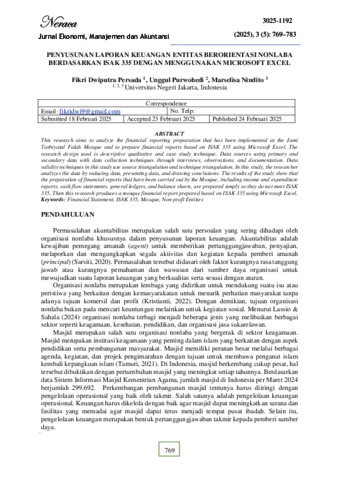 PERSADA, FIKRI DWIPUTRA (2025) PENYUSUNAN LAPORAN KEUANGAN ENTITAS BERORIENTASI NONLABA BERDASARKAN ISAK 335 DENGAN MENGGUNAKAN MICROSOFT EXCEL (STUDI KASUS PADA MASJID JAMI TARBIYATUL FALAH). S1 thesis, Universitas Negeri Jakarta.
