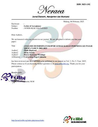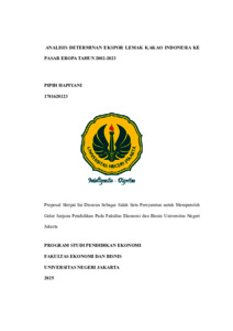 HAPIYANI, PIPIH (2025) ANALISIS DETERMINAN EKSPOR LEMAK KAKAO INDONESIA KE PASAR EROPA TAHUN 2002-2023. S1 thesis, Universitas Negeri Jakarta.