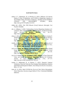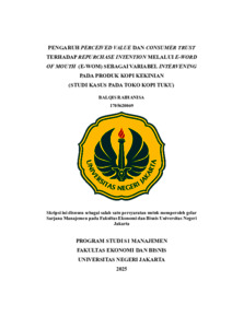 Raihanisa, Balqis (2025) PENGARUH PERCEIVED VALUE DAN CONSUMER TRUST TERHADAP REPURCHASE INTENTION MELALUI E-WORD OF MOUTH (E-WOM) SEBAGAI VARIABEL INTERVENING PADA PRODUK KOPI KEKINIAN (STUDI KASUS PADA TOKO KOPI TUKU). S1 thesis, Universitas Negeri Jakarta.