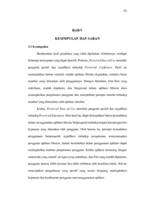 Rafli Septamasurya, 2024; ANALISIS FAKTOR-FAKTOR YANG MEMENGARUHI INTENTION TO USE PADA PENGGUNA APLIKASI TRANSPORTASI OJEK ONLINE, Program Studi S1 Manajemen, Fakultas Ekonomi dan Bisnis, Universitas Negeri Jakarta, Tim Pembimbing: Dr. Osly Usman, M.Bus & Ika Febrilia, SE, M.M Penelitian ini bertujuan untuk menganalisis faktor-faktor yang memengaruhi intention to use pada pengguna aplikasi transportasi online Maxim, dengan fokus pada perceived ease of use, perceived usefulness, dan perceived enjoyment. Maxim, yang pertama kali beroperasi di Indonesia pada tahun 2018 dengan tujuan untuk menyediakan layanan transportasi yang efisien dan terjangkau, telah berkembang pesat sejak saat itu. Untuk menganalisis faktor-faktor tersebut, penelitian ini menyebarkan kuesioner kepada 209 responden yang dipilih menggunakan teknik purposive sampling. Objek penelitian ini adalah responden berusia di atas 17 tahun yang tinggal di DKI Jakarta dan pernah menggunakan aplikasi Maxim. Penelitian ini menggunakan perangkat lunak SPSS versi 27 dan Structural Equation Modeling (SEM) dengan bantuan software AMOS untuk menganalisis dan mengolah data yang diperoleh. Hasil penelitian menunjukkan bahwa perceived ease of use berpengaruh positif dan signifikan terhadap perceived usefulness dan perceived enjoyment, yang berarti kemudahan penggunaan aplikasi dapat meningkatkan manfaat yang dirasakan serta kepuasan pengguna. Namun, perceived ease of use dan perceived usefulness tidak berpengaruh positif dan signifikan terhadap intention to use, karena pengguna lebih memperhatikan faktor lain seperti harga layanan yang terjangkau, kecepatan, dan kualitas layanan. Sebaliknya, perceived enjoyment memiliki pengaruh positif dan signifikan terhadap intention to use, menunjukkan bahwa pengalaman menyenangkan saat menggunakan aplikasi berkontribusi besar terhadap keputusan pengguna untuk terus menggunakan layanan Maxim. Penelitian ini menekankan pentingnya desain aplikasi yang intuitif dan pengalaman pengguna yang menyenangkan untuk meningkatkan daya saing Maxim di industri transportasi online. Temuan ini dapat menjadi dasar bagi pengembangan strategi perbaikan dan inovasi layanan Maxim di masa depan. Kata Kunci : Perceived Ease of Use, Perceived Usefulness, Perceived Enjoyment, Intention to Use,Transportasi Online