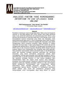 Septamasurya, Rafli (2025) ANALISIS FAKTOR-FAKTOR YANG MEMENGARUHI INTENTION TO USE PADA PENGGUNA APLIKASI TRANSPORTASI OJEK ONLINE. S1 thesis, Universitas Negeri Jakarta.