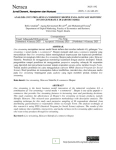 AMALIAH, BELLA (2025) ANALISIS LIVE.STREAMING E-COMMERCE SHOPEE PADA SKINCARE SKINTIFIC (STUDI GENERASI Z DI JABODETABEK). S1 thesis, Universitas Negeri Jakarta.