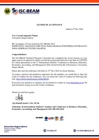 Niman, Crystal Anjanette (2025) ANALISIS E-SERVQUAL PADA APLIKASI TOKOPEDIA (STUDI KASUS PADA GENERASI Z DI DKI JAKARTA). S1 thesis, Universitas Negeri Jakarta.