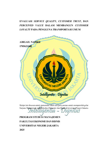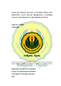 Natali, Abigail (2025) EVALUASI SERVICE QUALITY, CUSTOMER TRUST, DAN PERCEIVED VALUE DALAM MEMBANGUN CUSTOMER LOYALTY PADA PENGGUNA TRANSPORTASI UMUM. S1 thesis, Universitas Negeri Jakarta.
