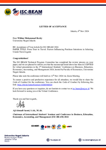 REZKY, WILDAN MOHAMMAD (2025) Dari Kepercayaan ke Perjalanan : Faktor – Faktor yang Memengaruhi Purchase Intention dalam Memilih Travel Umroh. S1 thesis, Universitas Negeri Jakarta.