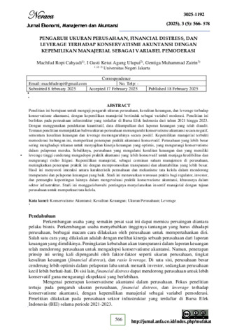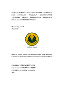 CAHYADI,, MACHFUD ROPI (2025) PENGARUH UKURAN PERUSAHAAN, FINANCIAL DISTRESS DAN LEVERAGE TERHADAP KONSERVATISME AKUNTANSI DENGAN KEPEMILIKAN MANAJERIAL SEBAGAI VARIABEL PEMODERASI. S1 thesis, Universitas Negeri Jakarta.