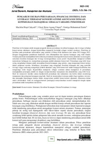 MACHFUD ROPI CAHYADI, Pengaruh Ukuran Perusahaan, Financial Distress, Leverage Terhadap Konservatisme Akuntansi Dengan Kepemilikan Manajerial Sebagai Variabel Pemoderasi. Skripsi. Jakarta: Fakultas Ekonomi, Universitas Negeri Jakarta, 2025. Penelitian ini bertujuan untuk menganalisis pengaruh ukuran perusahaan, financial distress, leverage terhadap konservatisme akuntansi dengan kepemilikan manajerial sebagai variabel pemoderasi. Penelitian ini berfokus pada perusahaan infrastruktur yang terdaftar di Bursa Efek Indonesia dari tahun 2021 sampai 2023. Sampel penelitian dipilih menggunakan purposive sampling, dengan jumlah observasi akhir sebanyak 69. Data diperoleh dari Laporan Keuangan Tahunan milik perusahaan infrastruktur yang kemudian diolah dengan Eviews 12. Hasil penelitian ini menunjukkan bahwa ukuran perusahaan, financial distress dan leverage berdampak negatif pada konservatisme akuntansi. Kepemilikan manajerial terbukti memoderasi hubungan ini, memperkuat penerapan praktik akuntansi konservatif. Perusahaan yang lebih besar sering menghadapi tekanan untuk menyajikan kinerja keuangan yang optimis, yang mengurangi konservatisme dalam pelaporan mereka. Sebaliknya, perusahaan yang mengalami kesulitan keuangan dan mereka yang memiliki leverage tinggi cenderung tidak mengadopsi praktik akuntansi yang lebih konservatif untuk menjaga kredibilitas dan mengurangi risiko litigasi. Hasil ini menyoroti interaksi antara karakteristik perusahaan dan mekanisme tata kelola dalam mendorong transparansi dan pelaporan keuangan yang sehat. Studi ini menawarkan wawasan praktis bagi regulator, investor, dan pemangku kepentingan lainnya dalam mengevaluasi praktik konservatisme akuntansi, khususnya di sektor infrastruktur. Kata Kunci: Konservatisme Akuntansi, Financial Distress, Leverage, Kepemilikan Manajerial