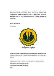 Rima Oktapiani, 1709619036. Pengaruh Efikasi Diri dan Motivasi Akademik Terhadap Keterlibatan Siswa Melalui Ketangkasan Belajar di SMKN 10 Jakarta. Program Studi S1 Pendidikan Administrasi Perkantoran, Fakultas Ekonomi dan Bisnis, Universitas Negeri Jakarta, Februari 2025. Pada abad 21 pembelajaran menuntut siswa untuk terlibat aktif dalam memahami materi, berpikir kritis, berkolaborasi, berkreasi, dan berkomunikasi secara efektif. Namun, partisipasi siswa di Indonesia masih menjadi tantangan, tercermin dari rendahnya peringkat pada PISA 2022. Penelitian ini bertujuan untuk menganalisis pengaruh Efikasi Diri dan Motivasi Akademik terhadap Keterlibatan Siswa melalui Ketangkasan Belajar. Metode penelitian yang digunakan adalah kuantitatif dengan pendekatan Structural Equation Modeling (SEM) menggunakan SmartPLS versi 4. Sampel penelitian menggunakan rumus Taro Yamane dengan tingkat kesalahan 5% dan menghasilkan sebanyak 155 responden yang dipilih melalui teknik probability sampling. Teknik analisis data menggunakan uji: Outer Model, Inner Model, dan Pengujian Hipotesis. Hasil analisis jalur hipotesis penelitian menghasilkan hasil < 0.05 dan R-square untuk variabel Y sebesar 75,8%, sedangkan untuk variabel Z sebesar 79%. Hasil penelitian menunjukkan bahwa Efikasi Diri dan Motivasi Akademik berpengaruh signifikan dan positif terhadap Keterlibatan Siswa melalui Ketangkasan Belajar secara langsung dan tidak langsung. Temuan tersebut menegaskan pentingnya pembelajaran interaktif dengan strategi bertahap yang berfokus pada manfaat jangka panjang. Dengan pendekatan yang tepat, keterlibatan, kepercayaan diri, dan motivasi siswa dapat ditingkatkan untuk mendukung proses pembelajaran yang lebih efektif. Kata Kunci: keterlibatan siswa, efikasi diri, motivasi akademik, ketangkasan belajar, mediasi