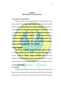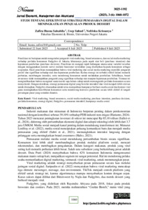 Zafira Husna Salsabila, Studi Tentang Efektifitas Strategi Pemasaran Digital Dalam Meningkatkan Penjualan Produk Dessert, Skripsi Jakarta: Fakultas Ekonomi dan Bisnis Universitas Negeri Jakarta. 2025 Penelitian ini bertujuan untuk mengkaji efektivitas strategi pemasaran digital dalam meningkatkan penjualan produk dessert, dengan fokus pada Fudgybro, sebuah merek dessert lokal yang dikenal melalui keberhasilannya dalam strategi viral marketing. Penelitian ini menganalisis pengaruh viral marketing, brand awareness, dan social media marketing terhadap purchase intention dan purchase decision pada konsumen di Jakarta. Metode yang digunakan dalam penelitian ini adalah pendekatan kuantitatif dengan penyebaran kuesioner sebagai alat pengumpulan data, dan teknik analisis data dilakukan menggunakan Structural Equation Modeling (SEM) dengan bantuan software AMOS. Jumlah sampel yang digunakan sebanyak 280 responden, yang merupakan pengguna aktif media sosial dan telah mengenal atau pernah mencoba produk Fudgybro. Pengambilan sampel dilakukan di lima wilayah kota administrasi DKI Jakarta, yaitu Jakarta Timur, Jakarta Selatan, Jakarta Barat, Jakarta Pusat, dan Jakarta Utara. Hasil penelitian menunjukkan bahwa viral marketing dan social media marketing berpengaruh positif dan signifikan terhadap purchase intention maupun purchase decision. Sebaliknya, brand awareness tidak berpengaruh signifikan terhadap kedua variabel tersebut. Selain itu, purchase intention ditemukan sebagai variabel yang paling kuat memengaruhi purchase decision, yang menekankan pentingnya membangun niat beli dalam strategi pemasaran. Temuan ini memperkuat pentingnya penggunaan strategi digital berbasis konten viral dan media sosial dalam membentuk perilaku konsumen dan meningkatkan penjualan, khususnya di industri makanan dan minuman yang kompetitif. Kata Kunci: Pemasaran Digital, Viral Marketing, Brand Awareness, Social Media Marketing, Purchase Intention, Purchase Decision.