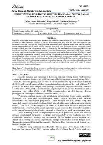 Salsabila, Zafira Husna (2025) STUDI TENTANG EFEKTIVITAS STRATEGI PEMASARAN DIGITAL DALAM MENINGKATKAN PENJUALAN PRODUK DESSERT. S1 thesis, Universitas Negeri Jakarta.
