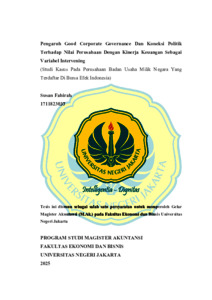 SUSAN FAHIRAH, Pengaruh Good Corporate Governance Dan Koneksi Politik Terhadap Nilai Perusahaan Dengan Kinerja Keuangan Sebagai Variabel Intervening (Studi Kasus Pada Perusahaan Badan Usaha Milik Negara Yang Terdaftar Di Bursa Efek Indonesia). Tesis. Jakarta. Program Studi Magister Akuntansi Konsentrasi Akuntansi Keuangan. Fakultas Ekonomi dan Bisnis. Universitas Negeri Jakarta. 2025 Nilai perusahaan merupakan salah satu indikator utama yang mencerminkan kinerja suatu entitas bisnis. Pentingnya penilaian ini semakin diakui karena dapat memengaruhi keputusan investasi, kebijakan manajerial, serta arah strategis perusahaan dalam upaya meningkatkan daya saing di pasar internasional. Beragam faktor, baik dari dalam maupun luar perusahaan, turut berperan dalam menentukan nilai tersebut. Faktor internal mencakup kinerja keuangan serta penerapan prinsip Good Corporate Governance (GCG). Penelitian ini bertujuan untuk mengkaji sejauh mana pengaruh GCG dan hubungan politik terhadap nilai perusahaan, dengan kinerja keuangan sebagai variabel mediasi. Objek penelitian difokuskan pada Badan Usaha Milik Negara (BUMN) yang tercatat di Bursa Efek Indonesia selama periode 2021 hingga 2024. Dari total 65 perusahaan yang menjadi populasi, sebanyak 13 perusahaan dipilih sebagai sampel menggunakan metode purposive sampling. Analisis data dilakukan melalui regresi linear berganda dan uji Sobel. Hasil penelitian menunjukkan bahwa pelaksanaan GCG yang diukur melalui keberadaan dewan komisaris serta adanya koneksi politik berpengaruh secara signifikan terhadap kinerja keuangan dan nilai perusahaan. Namun, Return on Assets (ROA) sebagai representasi dari kinerja keuangan tidak terbukti berpengaruh terhadap nilai perusahaan, sehingga tidak dapat berperan sebagai variabel mediasi dalam hubungan antara dewan komisaris maupun koneksi politik dengan nilai perusahaan. Kata kunci : Good Corporate Governance, Koneksi Politik, Kinerja keuangan, Nilai perusahaan