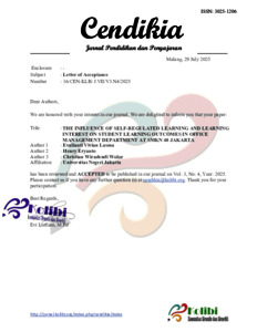 Vivian., Evalianti (2025) PENGARUH SELF REGULATED LEARNING DAN MINAT BELAJAR TERHADAP HASIL BELAJAR SISWA JURUSAN MANAJEMEN PERKANTORAN DAN LAYANAN BISNIS DI SMK NEGERI 40 JAKARTA. S1 thesis, Universitas Negeri Jakarta.