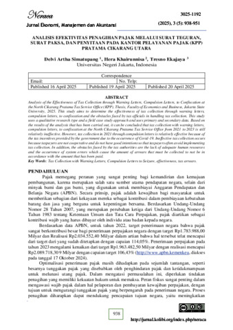 SIMATUPANG, ABSTRAK DELVI ARTHA (2025) ANALISIS EFEKTIVITAS PENAGIHAN PAJAK MELALUI SURAT TEGURAN, SURAT PAKSA, DAN PENYITAAN PADA KANTOR PELAYANAN PAJAK (KPP) PRATAMA CIKARANG UTARA. S1 thesis, Universitas Negeri Jakarta.