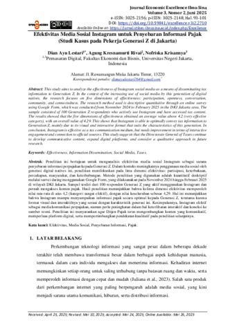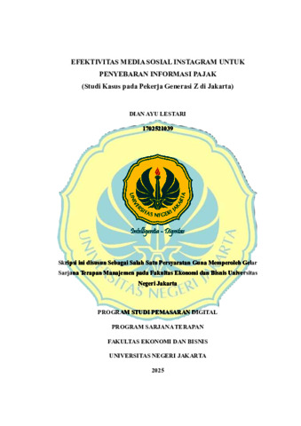 LESTARI, DIAN AYU (2025) EFEKTIVITAS MEDIA SOSIAL INSTAGRAM UNTUK PENYEBARAN INFORMASI PAJAK (Studi Kasus pada Pekerja Generasi Z di Jakarta). S1 thesis, Universitas Negeri Jakarta.
