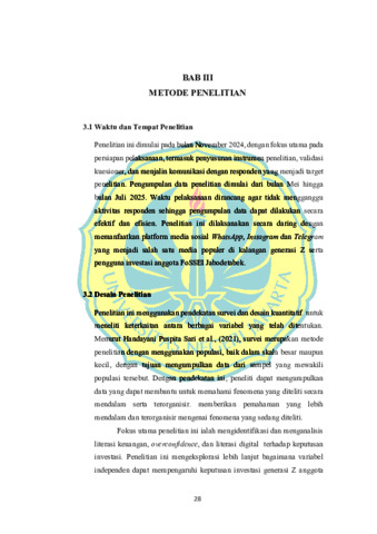Fauziah, Dini (2025) PENGARUH LITERASI KEUANGAN, OVERCONFIDENCE, DAN LITERASI DIGITAL TERHADAP KEPUTUSAN INVESTASI GENERASI Z (STUDI KASUS ORGANISASI FoSSEI JABODETABEK). S1 thesis, Universitas Negeri Jakarta.