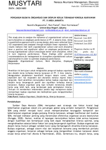Begawanita, Noorefa (2025) PENGARUH BUDAYA ORGANISASI DAN DISIPLIN KERJA TERHADAP KINERJA KARYAWAN PT. X AREA JAKARTA. S1 thesis, Universitas Negeri Jakarta.