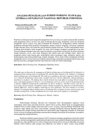 Afif, Muhammad Rahmandika (2025) ANALISIS PENGELOLAAN HYBRID WORKING TEAM PADA LEMBAGA KETAHANAN NASIONAL REPUBLIK INDONESIA. S1 thesis, Universitas Negeri Jakarta.