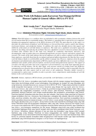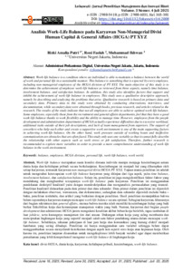 PUTRI, RIZKI AMALIA (2025) ANALISIS WORK-LIFE BALANCE PADA KARYAWAN NONMANAGERIAL DIVISI HUMAN CAPITAL & GENERAL AFFAIRS (HCGA) PT XYZ. S1 thesis, Universitas Negeri Jakarta.