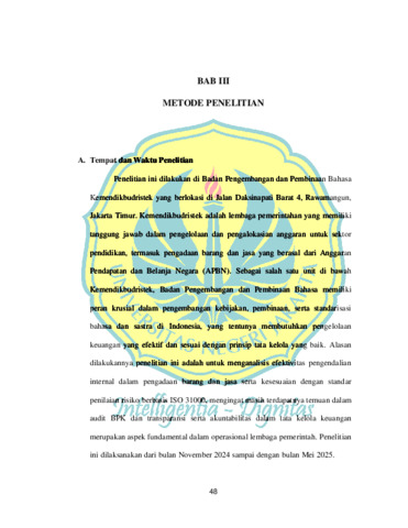 RANCANGAN PENGENDALIAN INTERNAL MELALUI MANAJEMEN RISIKO BERBASIS ISO 31000 DALAM PENGADAAN BARANG DAN JASA DI BADAN PENGEMBANGAN DAN PEMBINAAN BAHASA