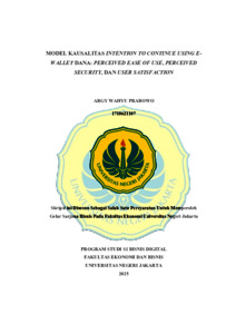 Argy Wahyu Prabowo: “Model Kausalitas Intention to Continue Using Ewallet DANA: Perceived Ease of Use, Perceived Security, dan User Satisfaction”. Skripsi, Jakarta: Program Studi S1 Bisnis Digital, Fakultas Ekonomi dan Bisnis, Universitas Negeri Jakarta. Tim Pembimbing: Prof. Dr. Umi Widyastuti, S.E., M.E. dan Diena Noviarini, M.M.Si. Penelitian ini bertujuan untuk menganalisis pengaruh perceived ease of use, Perceived Security, dan User Satisfaction terhadap intention to continue menggunakan e-wallet DANA. Penelitian ini dilatarbelakangi oleh meningkatnya penggunaan e-wallet di Indonesia, khususnya DANA, yang menuntut pemahaman lebih dalam mengenai faktor-faktor yang memengaruhi loyalitas dan keberlanjutan penggunaannya. Penelitian ini menggunakan pendekatan kuantitatif dengan metode survei dan instrumen berupa kuesioner yang disebarkan secara daring kepada pengguna aktif DANA di wilayah DKI Jakarta. Data dianalisis menggunakan metode Structural Equation Modeling (SEM) dengan bantuan software SmartPLS. Hasil penelitian menunjukkan bahwa Perceived Ease of Use dan Perceived Security berpengaruh positif dan signifikan terhadap user satisfaction. Selanjutnya, User Satisfaction terbukti berpengaruh positif dan signifikan terhadap Intention to Continue Using e-wallet DANA. Temuan ini menunjukkan pentingnya kemudahan penggunaan dan rasa aman dalam meningkatkan kepuasan pengguna serta mendorong niat untuk terus menggunakan layanan e-wallet. Kata Kunci: DANA, E-wallet, Intention to Continue, Perceived Ease of Use, Perceived Security, User Satisfaction