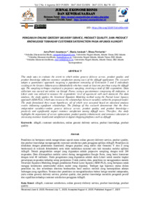 Penelitian ini bertujuan untuk mengevaluasi sejauh mana online grocery delivery service, product quality, dan product knowledge mempengaruhi customer satisfaction pada pengguna aplikasi Alfagift. Penelitian ini dilakukan dengan pendekatan kuantitatif, dengan populasi yang terdiri dari Generasi Y dan Z yang berdomisili di wilayah Jabodetabek serta telah melakukan minimal satu kali transaksi melalui aplikasi Alfagift. Teknik pengambilan sampel yang digunakan adalah purposive sampling, dengan total 200 responden. Data dikumpulkan melalui survei daring menggunakan Google Form, yang berisi kuesioner dengan total 40 indikator. Skala pengukuran yang digunakan adalah skala Likert untuk menilai tingkat persetujuan responden terhadap setiap pernyataan. Untuk analisis data, penelitian ini menggunakan metode Structural Equation Modeling dengan pendekatan Partial Least Squares (SEM-PLS), yang bertujuan untuk menguji keterkaitan antarvariabel dalam model yang diajukan. Terdapat tiga hipotesis utama dalam penelitian ini, dan seluruhnya diterima berdasarkan hasil analisis statistik yang menunjukkan adanya hubungan yang signifikan. Temuan dari penelitian ini mengindikasikan bahwa ketiga variabel independen, yaitu online grocery delivery service, product quality, dan product knowledge memiliki pengaruh positif dan signifikan terhadap customer satisfaction pengguna Alfagift. Dengan demikian, hasil studi ini menegaskan pentingnya optimalisasi layanan, peningkatan mutu produk, serta edukasi konsumen dalam meningkatkan loyalitas dan kepuasan pengguna aplikasi belanja digital seperti Alfagift. Kata Kunci: alfagift, customer satisfaction, online grocery delivery service, product knowledge, product quality