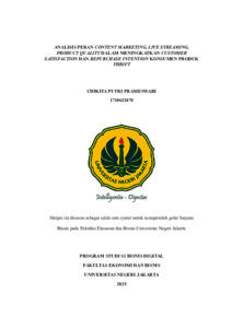 Prameswari, Chikita Putri (2025) ANALISIS PERAN CONTENT MARKETING, LIVE STREAMING, PRODUCT QUALITY DALAM MENINGKATKAN CUSTOMER SATISFACTION DAN REPURCHASE INTENTION KONSUMEN PRODUK THRIFT. S1 thesis, Universitas Negeri Jakarta.